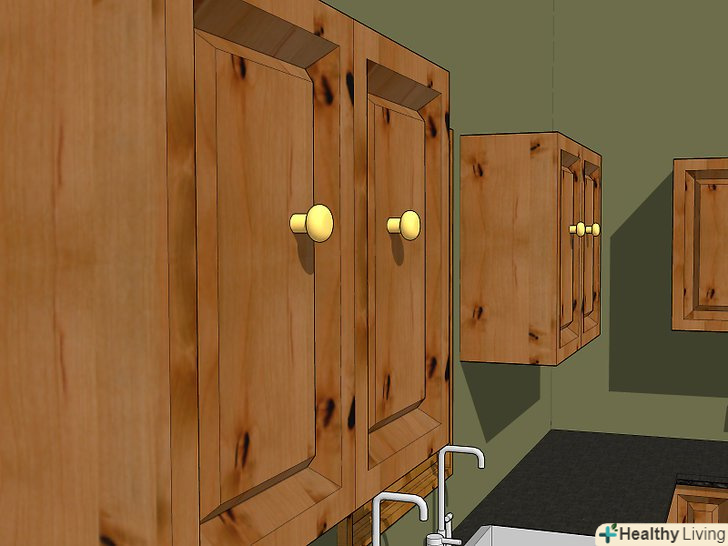 Розмістіть шафки. як тільки ви будете знати, де будуть розташовані великі предмети, ви зможете починати планування шафок. Пам'ятайте про зручність, коли будете планувати розташування шафок.- Деякі шафки повинні бути поруч з деякими побутовими приладами. Наприклад, шафки з приправами і маслами повинні бути поруч з плитою. Місце для зберігання чистячих засобів-поруч з раковиною і т. д.