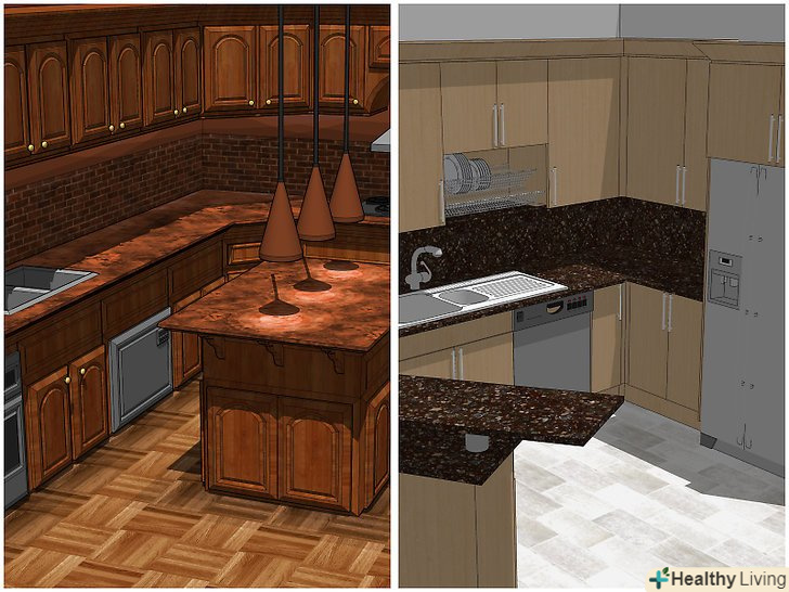 Використовуйте засоби, які допоможуть вам у плануванні. ви можете замалювати план кухні перед тим, як приступите до втілення. Так само, ви можете використовувати спеціальні програми для створення дизайну.- Існує багато програм, як платних, так і безкоштовних, які допоможуть вам спланувати найбільш підходящий для вас дизайн. У таких програмах ви можете створювати 3д моделі, підбирати колір і матеріал. Більш того, ви відразу будете бачити, якою буде ваша кухня.
