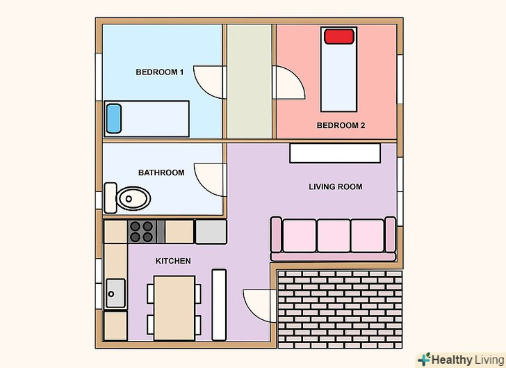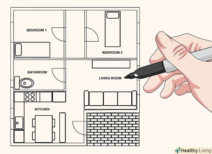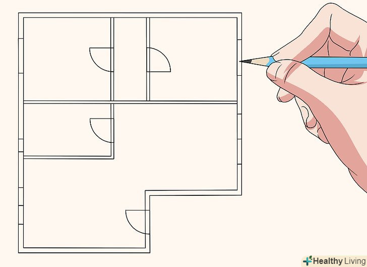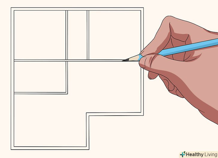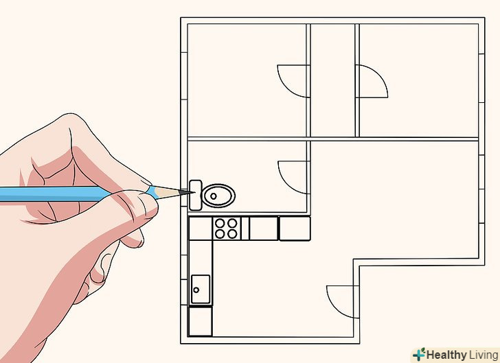 Знайдіть лекало з шаблонами, щоб по ним накреслити інші об'єкти. прийшов час зайнятися деталями інтер'єру. У будинку знадобляться водопровідні раковини, туалет, ванна кімната, стінні шафи, плита, холодильник. Все це можна намалювати, користуючись спеціальними шаблонами. Якщо у вас немає таких шаблонів, просто позначте на плані місця розташування різних об'єктів, не вдаючись в деталі – аби було зрозуміло, де що знаходиться.