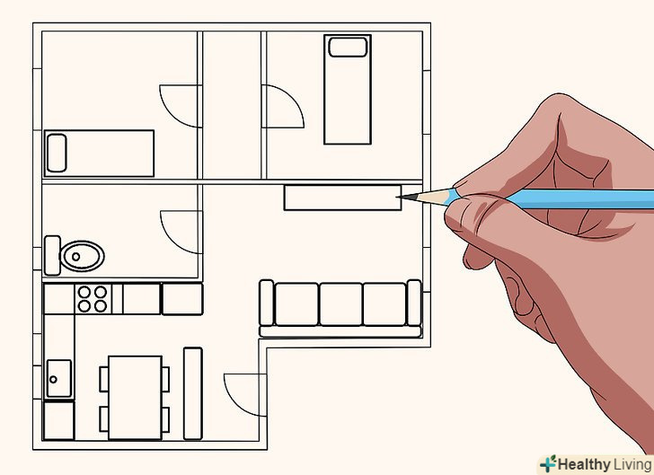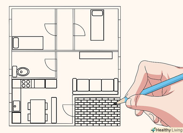 Щоб мати уявлення про те, що у вас вийде в результаті і як будуть виглядати кімнати, спробуйте нанести на креслення предмети меблів. цей крок не обов'язковий, але краще все ж уявляти, як буде виглядати будинок зсередини. Можна накреслити ліжка, телевізор, дивани, столи і стільці. Для меблів, як і для побутових об'єктів, також існують спеціальні шаблони. Не вдавайтеся в дрібні деталі і креслите предмети меблів у вигляді квадратів і прямокутників, користуючись лініями на міліметровому папері.