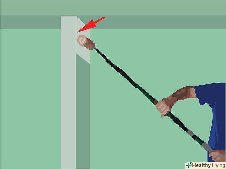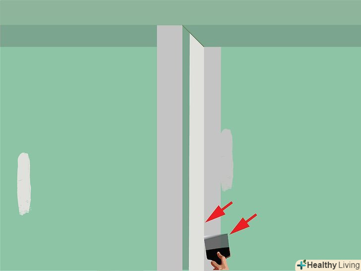 Затріть кути. пройдіться шпателем по краях, щоб згладити кути.- Наберіть шпателем невелику кількість розчину для згладжування кутів.