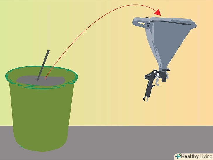 Перелийте готовий розчин в фарборозпилювач. наповніть його від половини до трьох чвертей обсягу.- Не заповнюйте пульверизатор до кінця, бо тоді їм буде важко керувати.