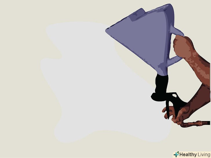 Розпиліть розчин на гіпсокартон. робіть це швидкими і рівномірними рухами вгору-вниз і з боку в бік.- Перед тим як почати, розпорошіть на шматок картону. Відрегулюйте повітряний клапан і носик розпилювача так, щоб текстура виглядала привабливо.