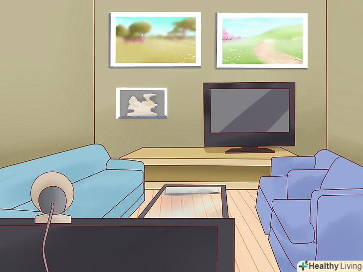 Повісьте прикраси і розставте меблі відповідним чином. оригінальні речі або меблі у вашій кімнаті — це ще півсправи; необхідно правильно розвісити/розставити їх, тобто так, щоб їх було видно, і вони відмінно виглядали звідти, звідки ви збираєтеся знімати вашу кімнату. Більш того, розстановка меблів не повинна заважати вам вільно пересуватися по кімнаті.- Якщо ви не знаєте, як розставити меблі, зверніться до теорій внутрішнього оздоблення приміщень. Наприклад, однією з таких теорій є китайський феншуй, який, крім іншого, вчить правильно розставляти меблі для отримання «сприятливих потоків енергії». [2]