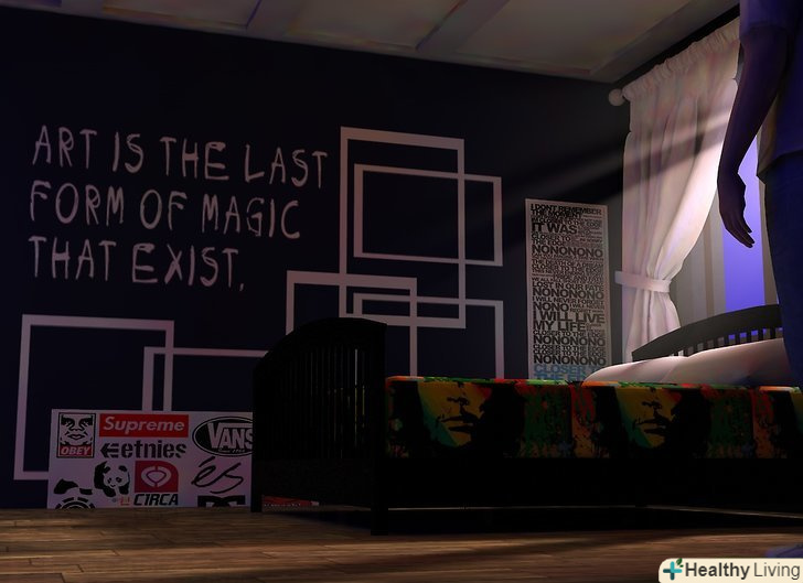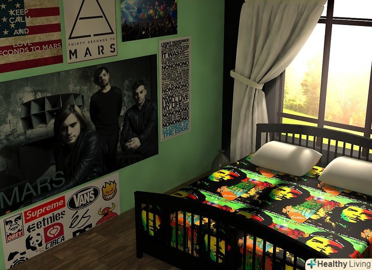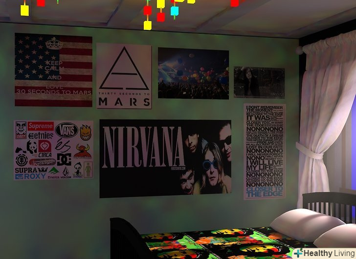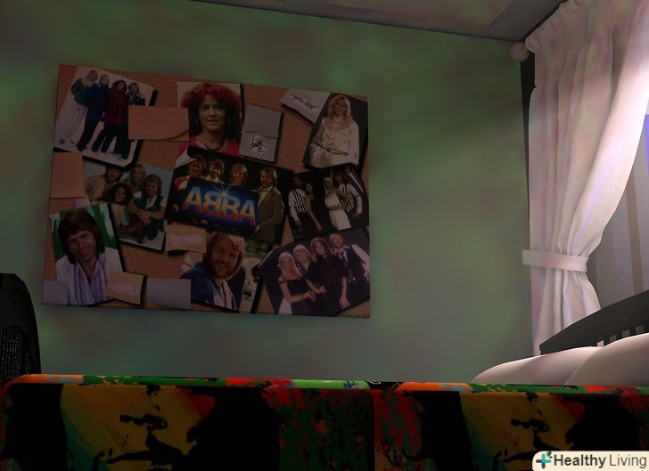 Повісьте на стіну колаж. у більшості користувачів Tumblr одна стіна кімнати обов'язково зайнята колажем. Колаж-це різноманітні зображення, склеєні в обраному вами порядку. Це можуть бути особисті фотографії, картинки, вирізані з журналів, або навіть оригінальні твори мистецтва, зроблені вами. Обмежень розмірів колажу немає (він обмежений тільки розмірами стіни).- Розглянемо прикраса кімнат на прикладі трьох персонажів — Девіда, Кім і Луїса. Стежачи за тим, як вони прикрашають свої кімнати, ви можете навчитися цьому і застосувати отримані знання для декорування вашої власної кімнати.