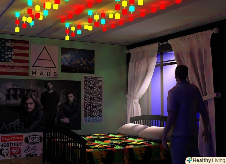Повісьте на стіну різні предмети. ще однією поширеною тенденцією на фотографіях кімнат в Tumblr є розвішування на стінах різних предметів, наприклад, прапорів, ковдр, бус, старого одягу, саморобних штор і тому подібного. Такі предмети не тільки прикрасять вашу кімнату, але і додадуть їй трохи індивідуальності.- Давайте розглянемо Луїса. Луїс-це студент з Перу, який пишається своєю країною. Тому для нього логічним вибором буде повісити на стіну (над дверима, наприклад) Перуанський прапор. Якщо обраний спосіб є шанобливим по відношенню до прапора, то це відмінна можливість показати на Tumblr свою любов до Батьківщини.
