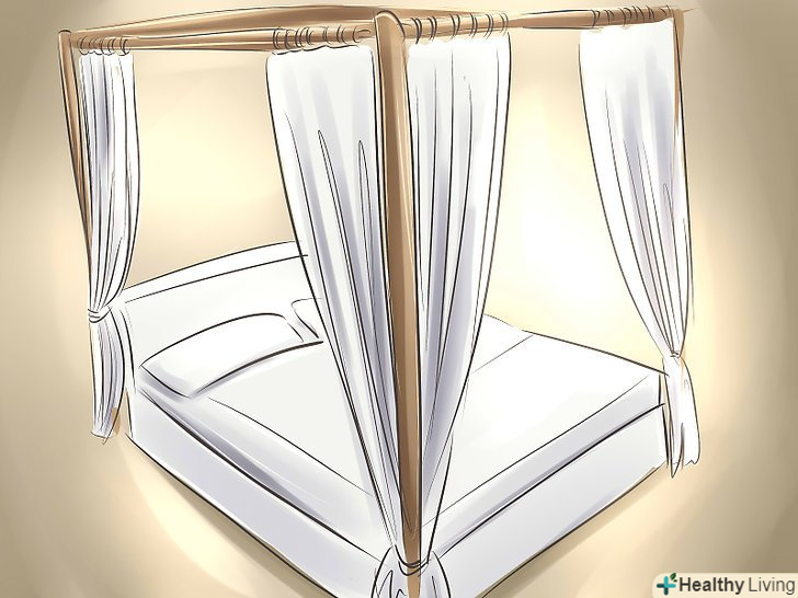 Спробуйте ліжко з балдахіном. якщо у вашій мансарді досить висока стеля, підкресліть це за допомогою ліжка з балдахіном. Вертикальні стовпчики змушують око рухатися вгору і вниз, додаючи простору, а м'яка драпірується тканина створює спокійну атмосферу.