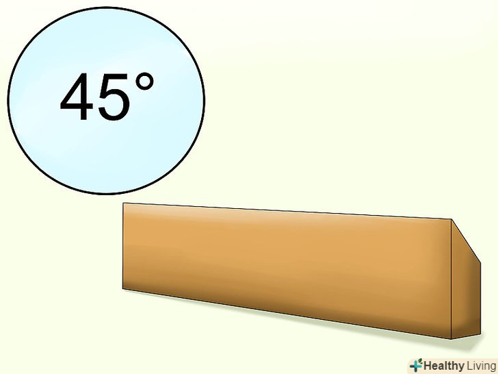 - Вершина планки повинна мати похилу кромку, а не пряму. Візьміть пилу і під кутом в 45 градусів поздовжньо обріжте одну сторону планки. Ось на що буде вішатися полку.