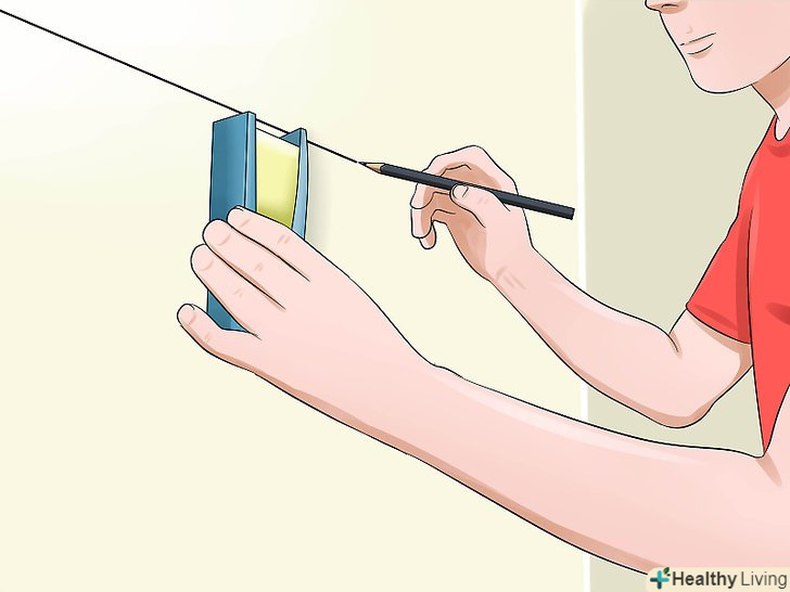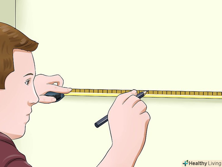 - Ви також можете вибрати інший метод і виміряти внутрішню частину порталу від верхнього краю полиці до місця, де ви збираєтеся встановити планку. Потім дізнайтеся довжину тієї сторони планки, якої вона буде кріпитися до стіни. Підсумовуйте отримані розміри разом. Наприклад, якщо відстань від полиці обрамлення до краю дорівнює 5 см, а довжина планки дорівнює 3,5 см, тоді сума цих двох величин буде дорівнювати 8,5 см.намалюйте нову лінію на стіні, використовуючи отримані дані.