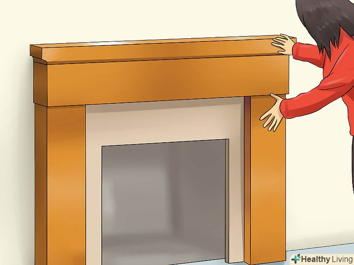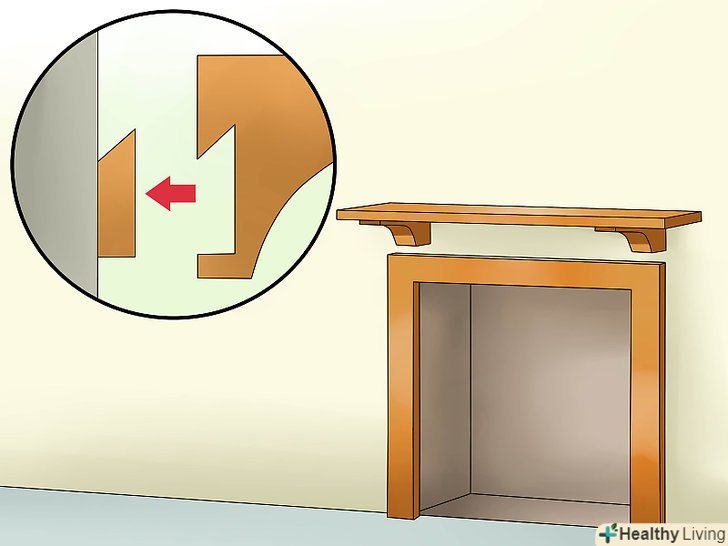 Прикладіть полицю до стіни. визначте точне розташування камінної полиці над Вашим каміном. Більшість камінних полиць розміщуються на висоті 125-150 см від підлоги. При установці полки не забудьте про висоту загоряння. Так як дерево є горючим матеріалом, існують закони і правила, які повинні дотримуватися при розміщенні камінної полиці над камерою згоряння каміна.- Якщо ширина полиці дорівнює 25 см, мінімально допустима відстань від верхнього краю каміна зазвичай становить 48 см. для полиці шириною 20 см, відстань повинна бути 43 см, і 38 см для полиці шириною в 15 см. [5]