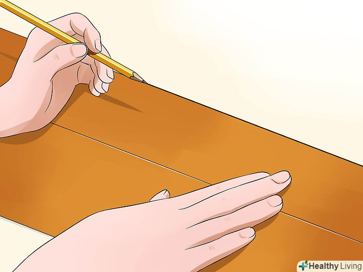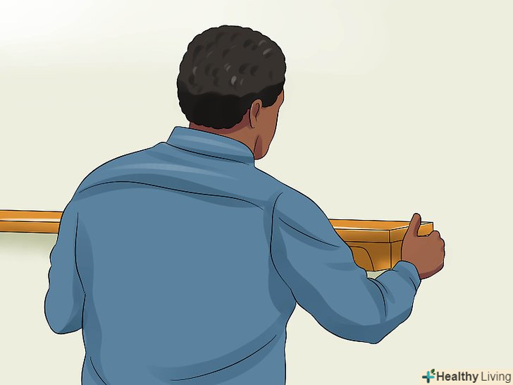 Підготовка планки. саме планка буде утримувати полку на стіні. Вона повинна бути досить довгою, щоб відповідати ширині вашої полиці.- Виміряйте довжину полиці. Потім, використовуючи це значення, знайдіть центральну лінію і відзначте її на планці. Ви повинні поєднати позначку з тією, що зробили в першому кроці. [6] You will line this mark up with the mark you made on the wall in Step 1.
