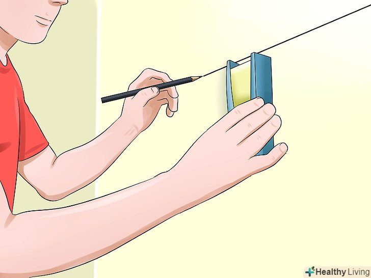 Знайдіть і позначте стійки. якщо ви кріпите портал до гіпсокартону, тоді вам потрібно буде прикріпити планки до трьох стійок позаду порталу. Виявивши стійки, позначте їх у центрі вздовж планок.- Стійки призначені для підтримки та утримання гіпсокартону у внутрішніх стінах. [2] коли ви вішаєте важкі предмети, на зразок порталу, переконайтеся, що вішаєте їх на стійки. Стійки найлегше знайти за допомогою детектора стійок, який продається в будь-якому будівельному магазині.