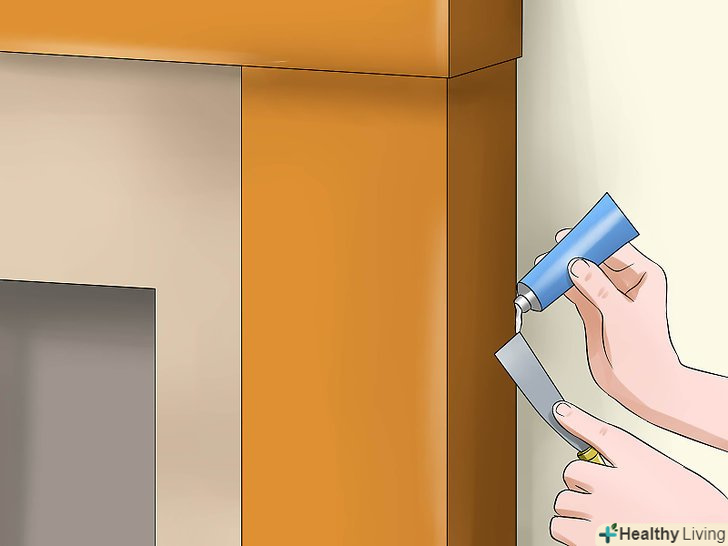 Додайте завершальних штрихів. прикріпіть декоративну накладку. Між стіною і порталом з'явиться щілину, яку потрібно приховати декоративною накладкою. Для її установки можете використовувати цвяхи.- Покрийте головки болтів дерев'яною замазкою, рівномірно розподіляючи замазку по всій поверхні порталу. Дайте замазці висохнути, після чого нанесіть фарбу, щоб повністю приховати отвори.