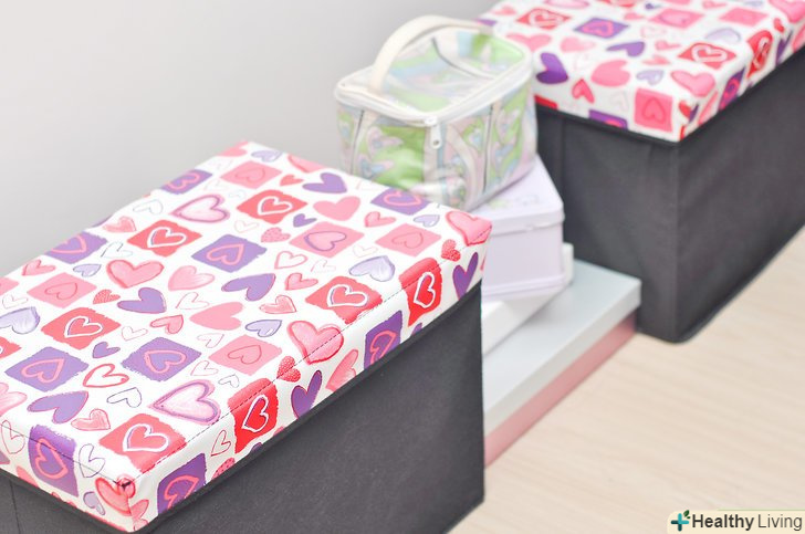 Виділіть місце для зберігання речей. вам обов'язково потрібно таке у вашій кімнаті! Можете поставити великі незвичайні коробки в кімнаті або розставити свої речі на полицях. І той, і інший спосіб відмінно підійдуть. Ще вам знадобиться шафа, де ви будете зберігати одяг. Але тримайте його в порядку. Там повинно бути чисто і все акуратно розкладено. У вас повинні бути окремі секції для взуття, головних уборів, сумочок і одягу. Не змішуйте все в купу. Покладіть светри в висувні ящики, щоб вони не м'ялися, для маленьких кімнат підходять кутові шафи.