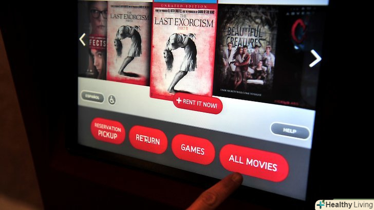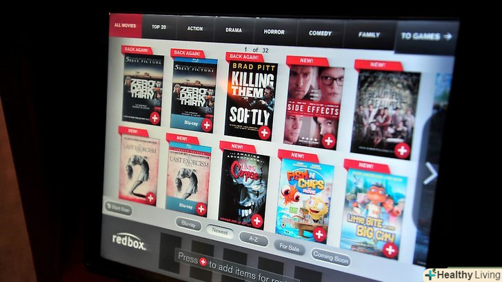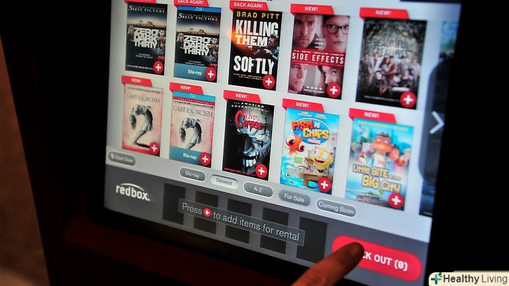Виберіть серед трьох опцій на екрані (як тільки ви будете у найближчого RedBox): "Rent a DVD", "Online rental Pick up" і "Return a DVD". Якщо ви хочете орендувати DVD, натисніть "Rent a DVD". Ви будете перенаправлені на екран, де будуть відображатися деякі з фільмів, які є в ящику.