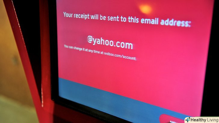 Введіть Вашу електронну адресу.електронна адреса буде вашою квитанцією. Ви не отримаєте паперову квитанцію, поки не введете електронну адресу. Якщо ви вперше використовуєте RedBox, то поле буде порожнім. Але коли ви будете орендувати DVD наступного разу, він запам'ятає Вашу адресу. Коли ви закінчите, натисніть Enter. Тоді DVD вийдуть з апарату збоку від RedBox. DVD будуть в маленьких коробочках RedBox.