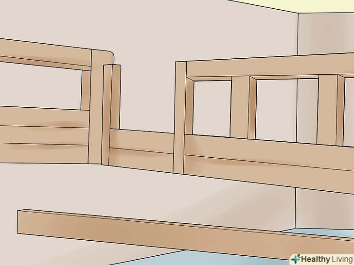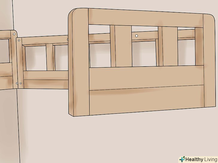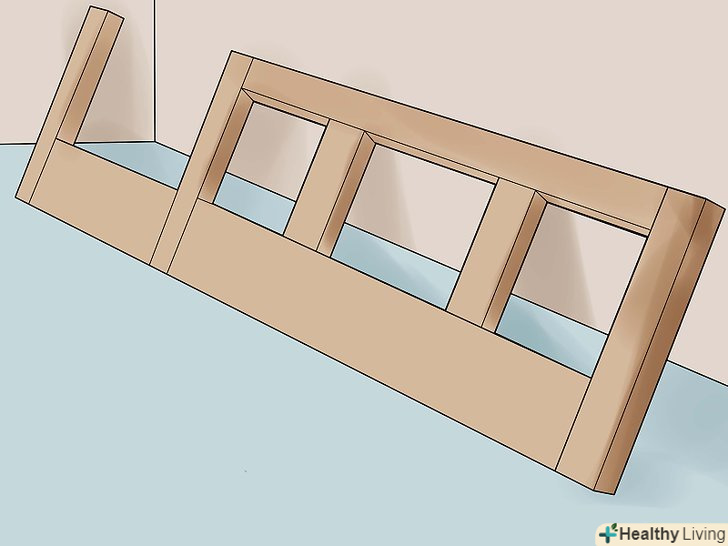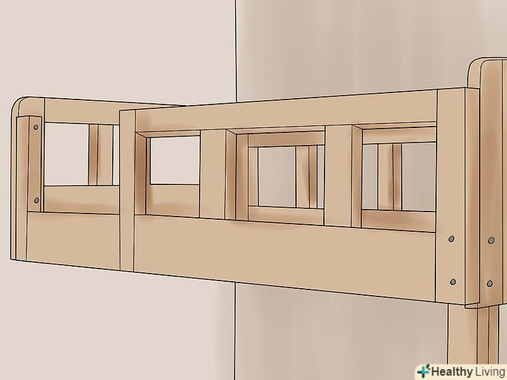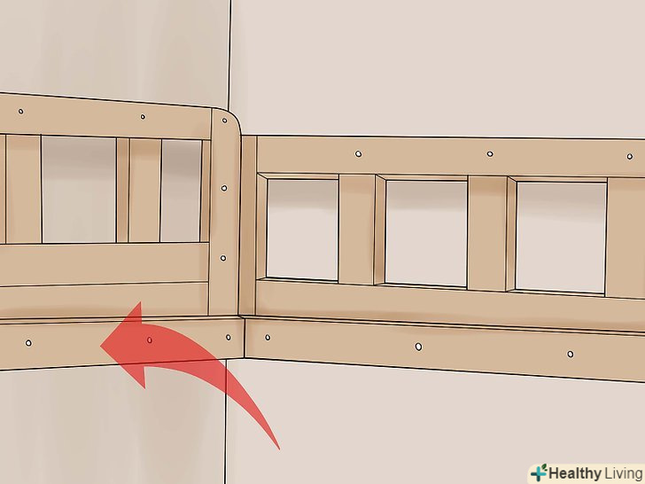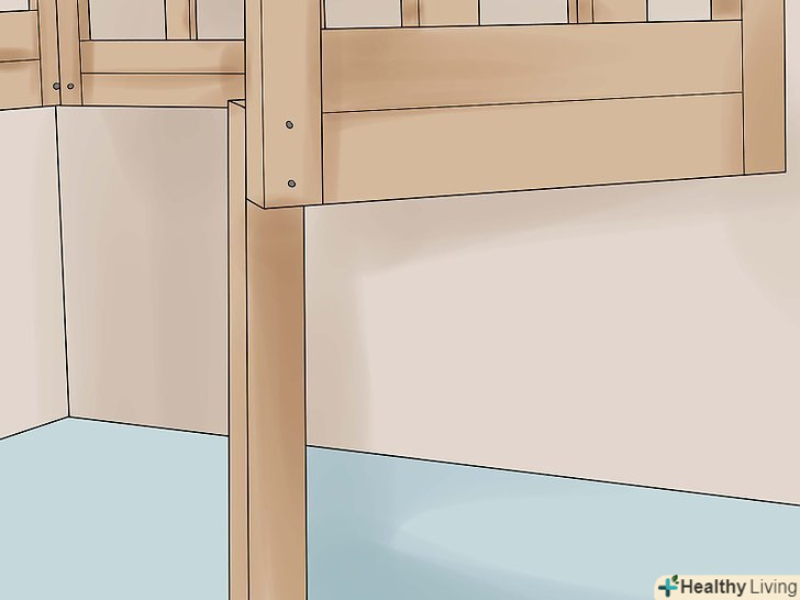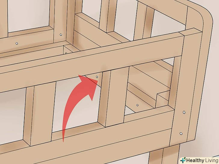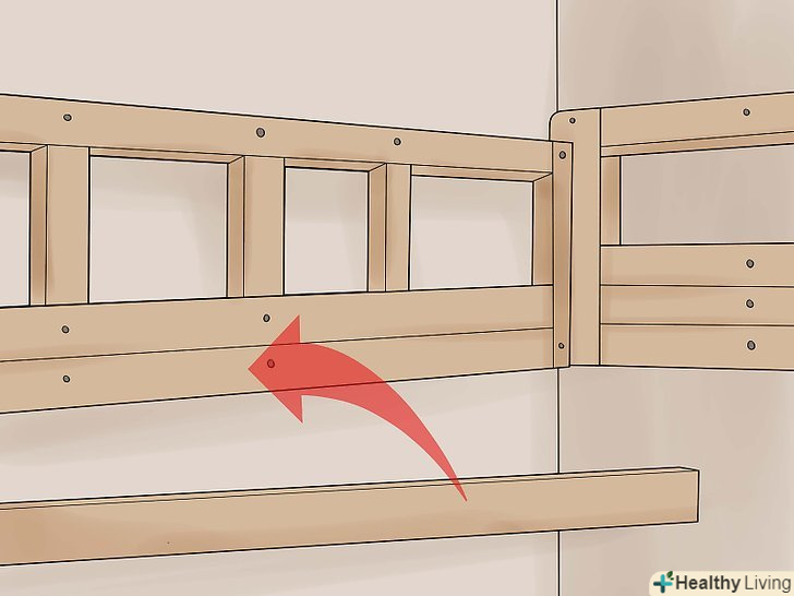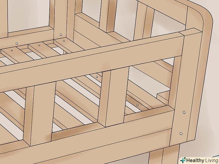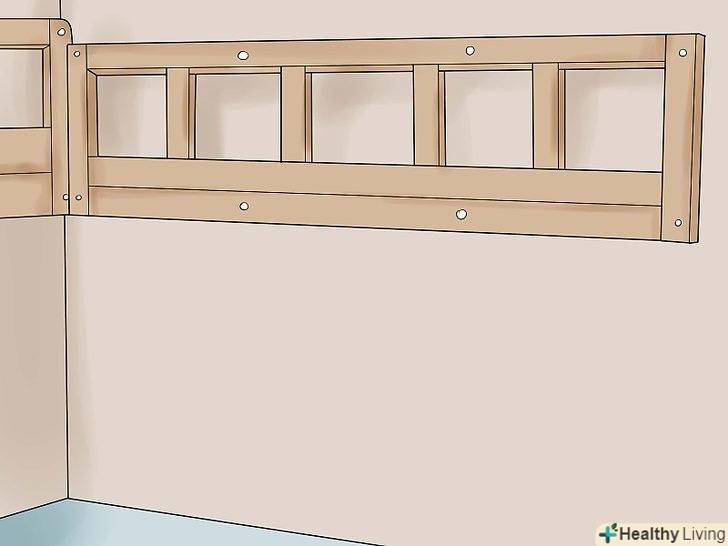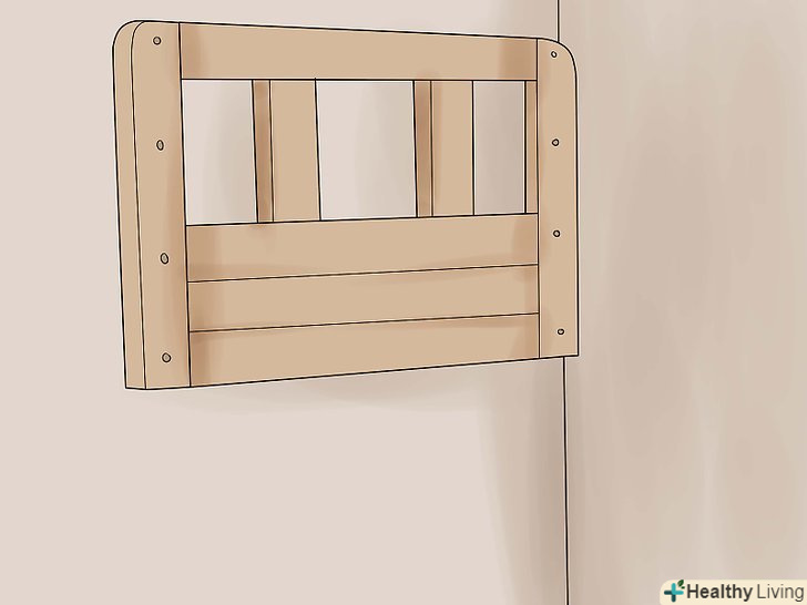 Прикріпіть першу бічну опору. встановіть її зсередини узголів'я так, щоб вона була на висоті опор для перекладин, потім прикріпіть її до узголів'я чотирма шестисантиметровими шурупами.