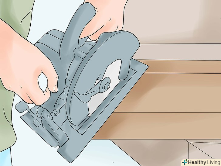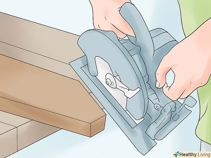 Виріжте з'єднує паз. прикладіть опору до лицьової сторони і відзначте чотирьохсантиметрову виїмку - це дозволить добре прикріпити Сходи до ліжка. Виріжте циркулярною пилкою виїмку, потім виріжте другу опору, приклавши першу як шаблон.