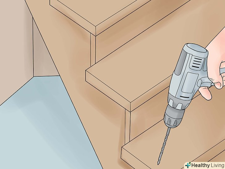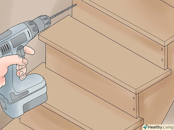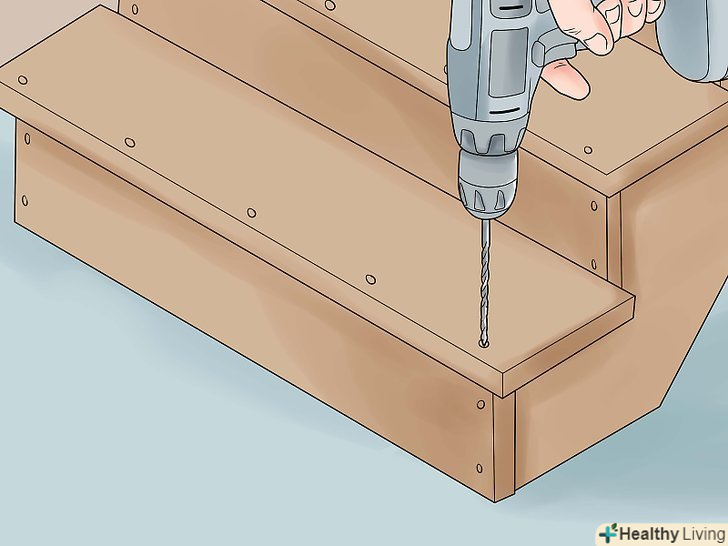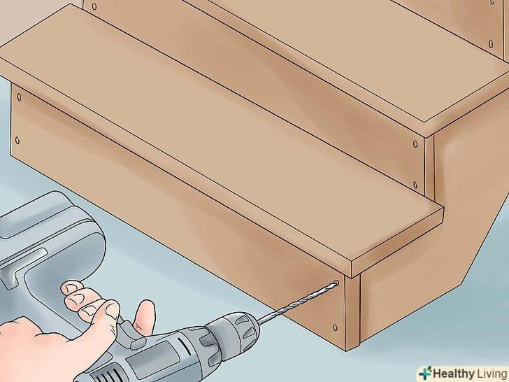 Приробити сходинки. розмістіть і відзначте, де будуть ступені. Переконайтеся, що висота ступенів дозволить комфортно користуватися сходами. Просвердливши напрямні отвори, прикріпіть кожну сходинку чотирма шестисантиметровими шурупами.