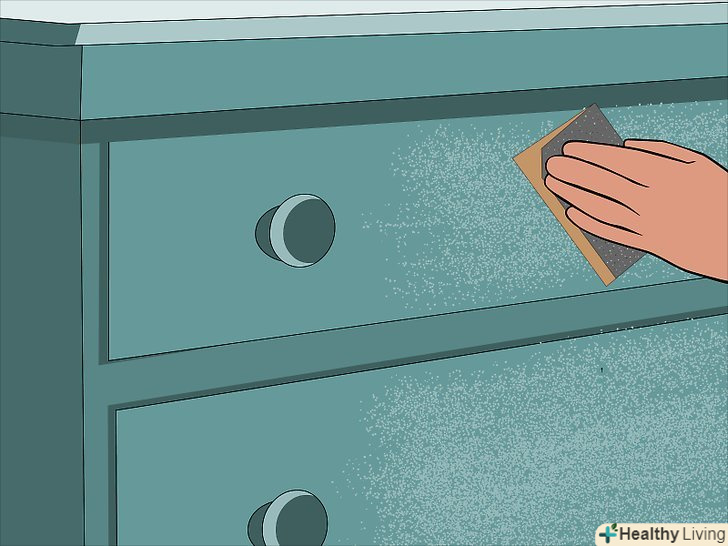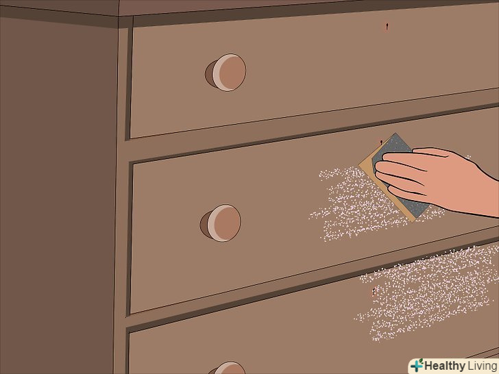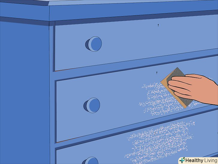 Почніть шліфування. відповідно до методу, зазначеного для старого покриття вашого комода, приступите до шліфування поверхні. Навіть якщо ви використовували розчинник для зняття фарби, будівельний фен і т.д., щоб видалити більшу частину колишнього покриття, шліфування як і раніше має важливе значення для видалення будь-яких залишилися непіддатливих або грубих ділянок, а також згладжування поверхні перед фарбуванням. Для шліфування вам знадобиться наступне:- Якщо ви видаляєте існуюче покриття методом шліфування: шліфування комода займе значну кількість часу. Можливо, вам доведеться виділити кілька днів поспіль, щоб завершити цю частину. Почніть з наждачного паперу з меншою зернистістю-наприклад, 150-а потім підвищуйте до 200-300 в залежності від поверхні. Кожен наступний клас буде видаляти різні частини поверхні, тому обов'язково обробіть покриття шліфувальним папером різного ступеня зернистості.