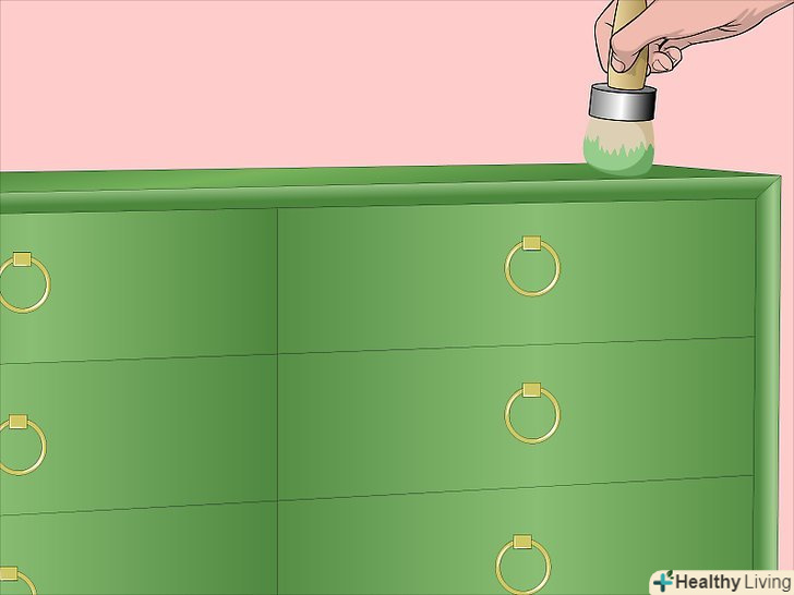 Нанесіть масло пензлем на комод і ящики. використовуйте звичайну широку кисть, яку Ви б використовували для фарбування комода. Будьте щедрі - спочатку деревина вбере масло.