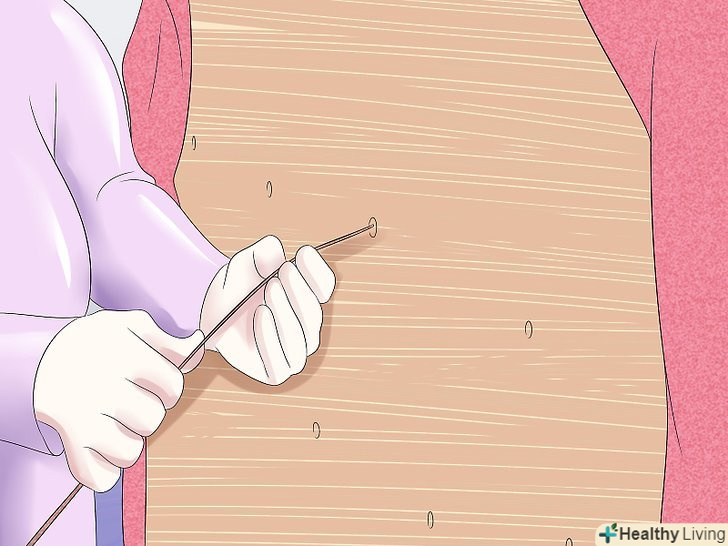 Просвердлите отвори в місцях, де ви хочете встановити гудзики. отвори не повинні бути занадто великими, але достатніми, щоб можна було кілька разів протягнути через них голку з ниткою.- Для кожного ґудзика необхідно просвердлити одне або два отвори в залежності від того, який метод кріплення ви хочете використовувати. Якщо ви використовуєте метод з двома отворами, постарайтеся щоб вони збіглися з отворами на гудзику.