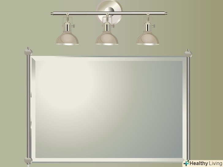 Закріпіть світильник над дзеркалом, але пам'ятайте, що таке освітлення призведе до появи тіней на обличчі. якщо вирішите використовувати вбудоване освітлення, намагайтеся закріпити світильники так, щоб вони не опинилися прямо над дзеркалом.- Щоб позбутися від тіней, можна розмістити вертикально вздовж дзеркала вузькі довгі лампи. Якщо дзеркало ширше метра, лампи повинні бути закріплені на відстані 2-2.30 метра від підлоги.