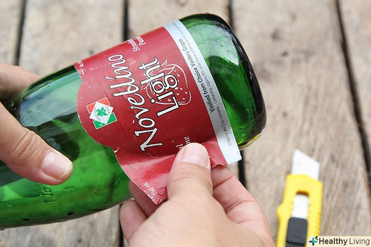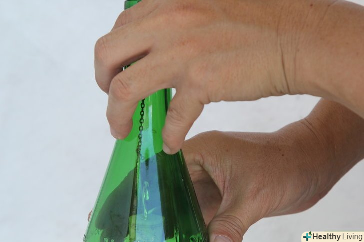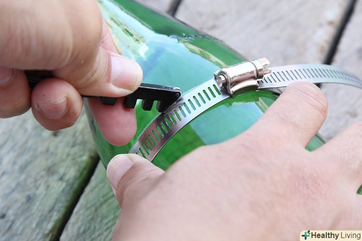Візьміть склоріз і використовуючи хомут зробіть їм надріз навколо пляшки, як показано.