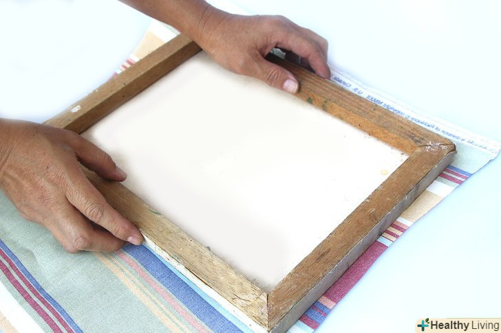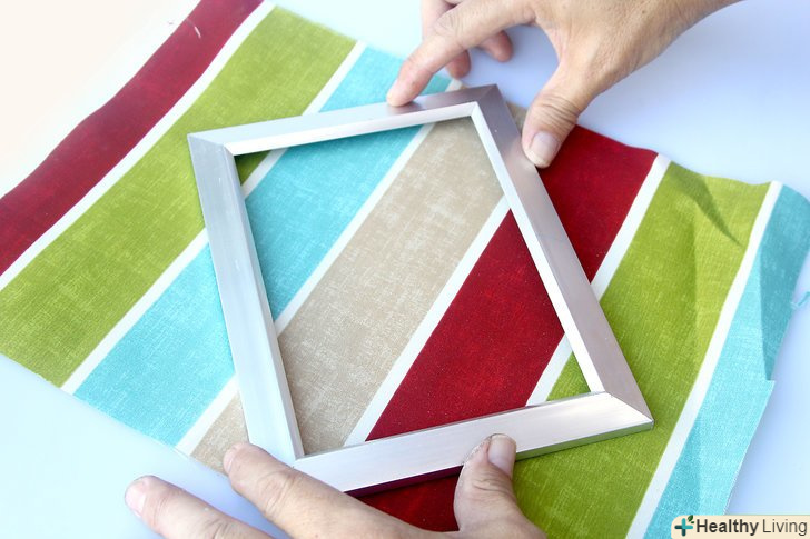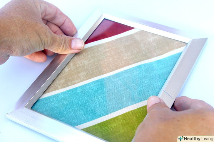 Зберіть деталі рамки разом. обережно помістіть скло в рамку, потім тканину і підрамку. Туго натягніть тканину, перш ніж притиснути до підрамки.- Ви можете навіть і не вставляти скло якщо хочете виділити і підкреслити текстуру тканини.