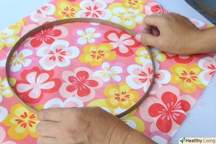 - Важливо, щоб тканина була хоча б на 5 см ширше по всій довжині кола п'яльців. Перестрахуйтеся і візьміть навіть набагато більший шматок тканини для маніпулювання з підбором і враховуйте виступ в 5 см з кожного боку.