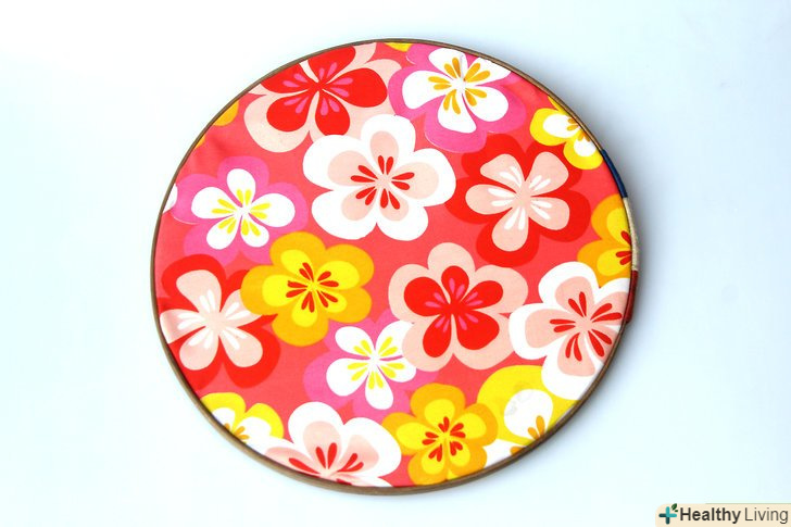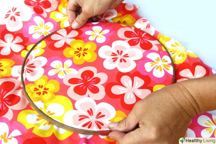 Виберіть найкраще розташування. накладіть тканину лицьовою стороною на полотно. Посувайте тканину по колу, поки не знайдете найбільш привабливий фрагмент, обмежений розмірами полотна.- Маючи тканину з повторюваним симетричним візерунком не так важливий вибір її розташування, так як при будь-якому розкладі кінцевий продукт не буде відрізнятися. Однак, цей етап дуже значний, якщо ви вибрали тканину з великим або асиметричним принтом.