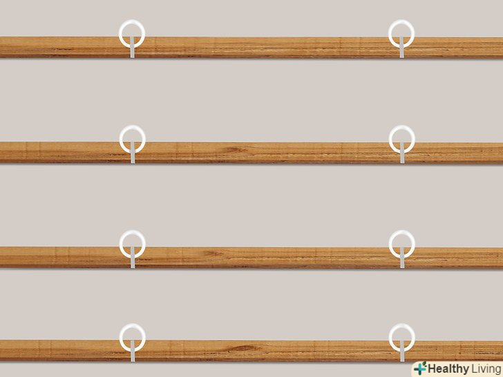Пришийте пластикові петлі до планок. важливо, щоб петлі пришиті рівно і строго по двох вертикальних лініях.- Для економії часу в магазинах можете придбати бавовняні нитки з прикріпленими пластиковими петлями, створені спеціально для цих цілей.