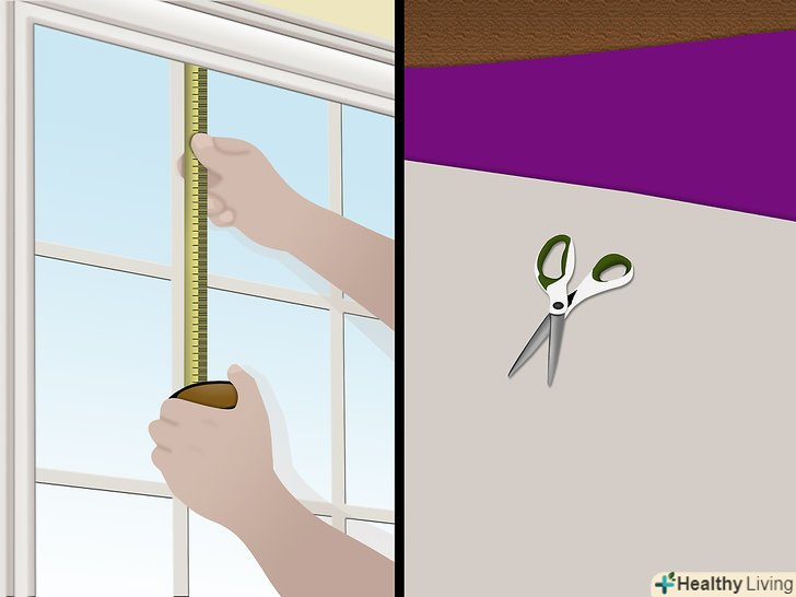Виміряйте вікно. Таким чином, ви будете точно знати, скільки тканини вам потрібно.- Переконайтеся, що виміряли і довжину і ширину. Хоча штора, швидше за все, не буде повністю закривати довжину всього вікна, ви повинні визначитися, наскільки вікно буде закрито тканиною.