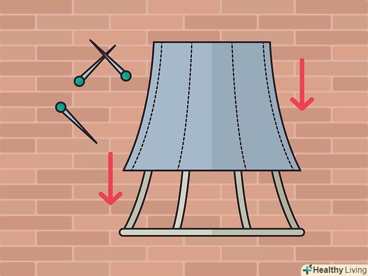 Вставте підклад (якщо використовуєте). приколіть його до тканини всередину абажура виворітного стороною. Поєднайте шви зі спицями, як ви це робили з тканиною. Вручну зшийте, щоб край виглядав акуратно і закінчено. [1]- Якщо ви не впевнені, чи варто возитися з підкладів, потримайте тканину на світлі лампи і перевірте, наскільки вона пропускає світло. Не варто "морочитися" з підкладів, якщо яскравість світла Вас влаштовує.