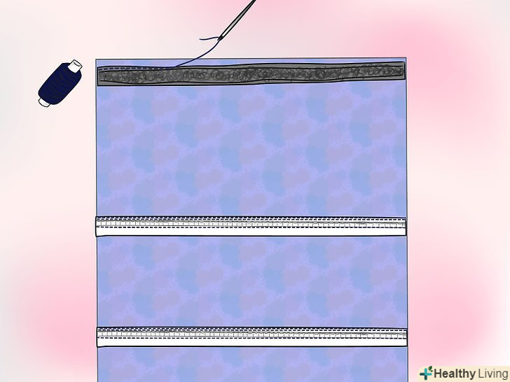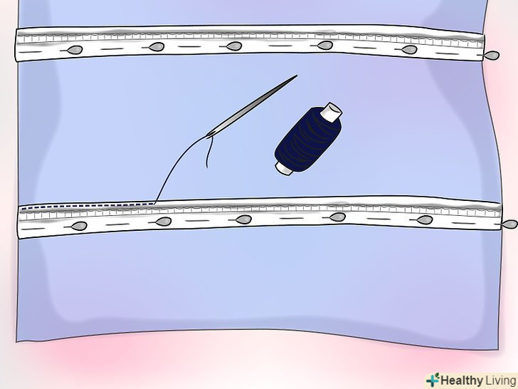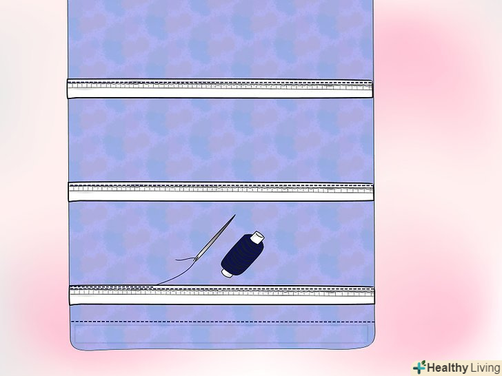 Обережно зшийте "канавку", як показано на верхньому малюнку. Таким чином, ви, з необережності, не зашиєте петлі.- Спробуйте закріплювати і зшивати по одному ряду за раз, видаляючи позначки перед переходом до наступної смужці. Таким чином, ви переконаєтеся, що тканина між рядами натягнута гладко і забезпечите кращу якість готового продукту.