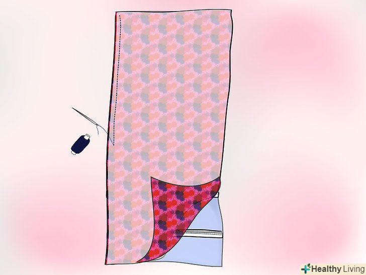 Обріжте нижні кути і виверніть їх лицьовою стороною назовні, при цьому акуратно виштовхніть куточки. Коли ви побачите, як збирається ваша штора, то відчуєте себе професійною швачкою! Ретельно розгладьте кути штори праскою.- Пришийте підкладку до тканини! скріпіть разом зовнішні сторони матеріалів, зшийте разом боки і низ матеріалу, відступивши від краю на 2 см, і залишивши верх відкритим.
