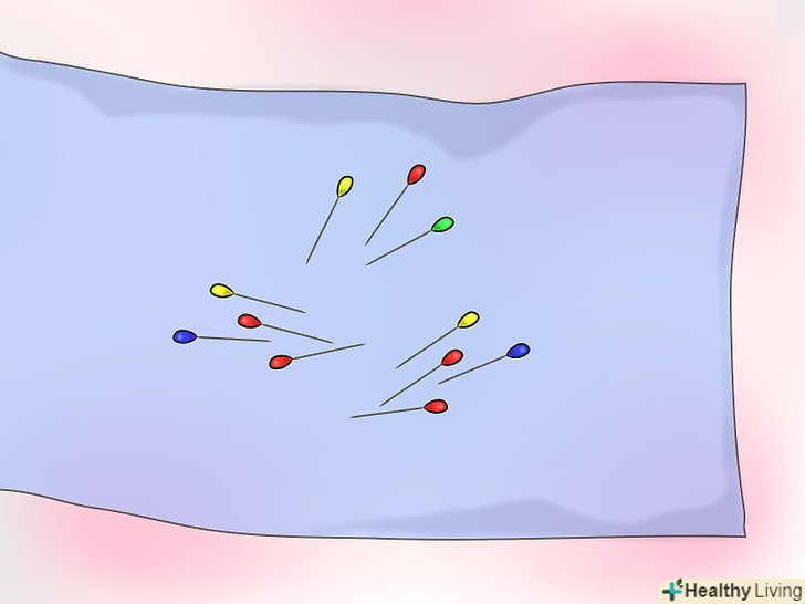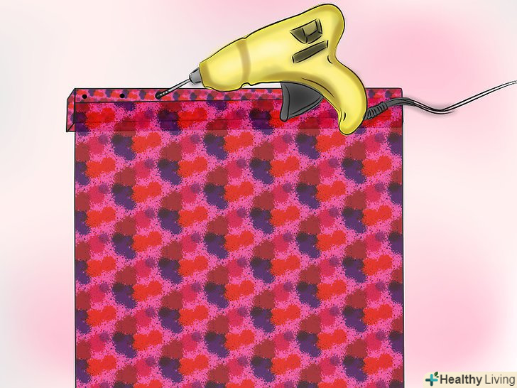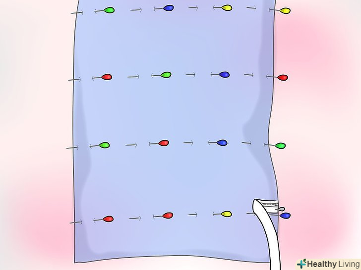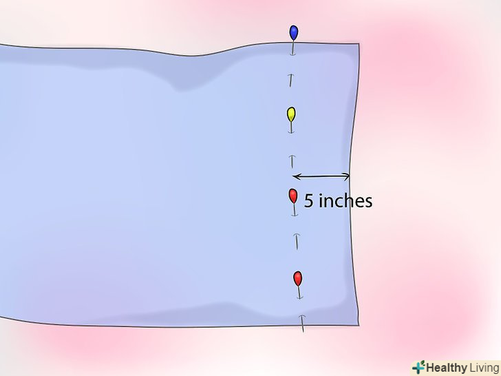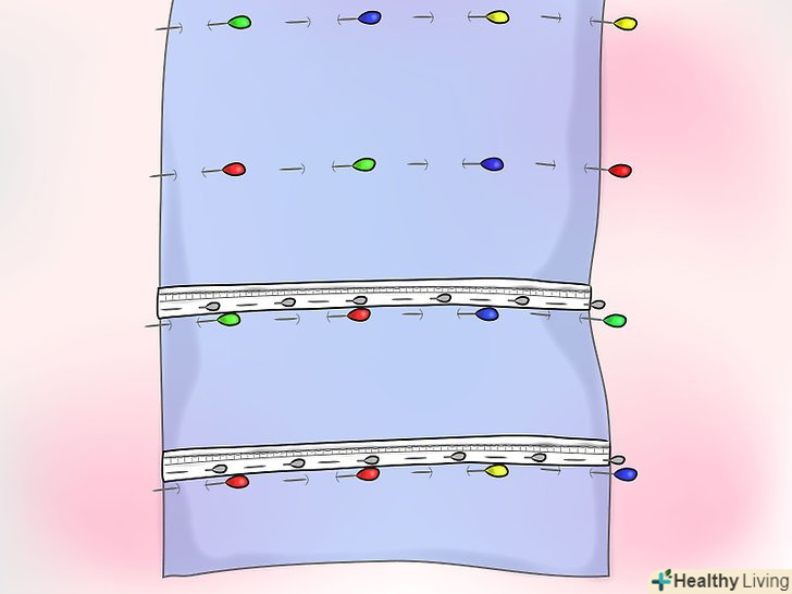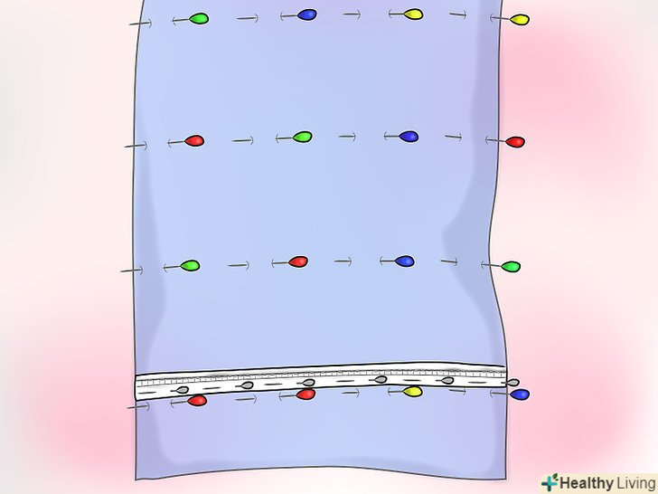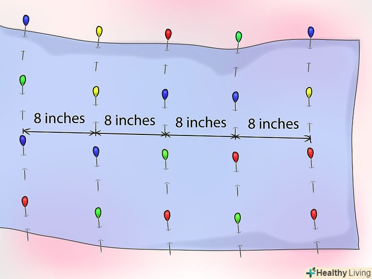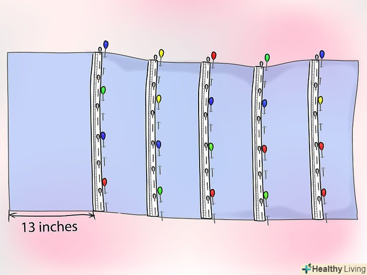 Візьміть підкладку і за допомогою шпильок відзначте виміри для шторної стрічки (див. нижче).- Перший ряд стрічок повинен відступати від низу хоча б на 12 см.