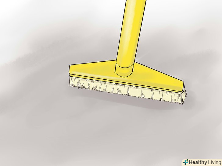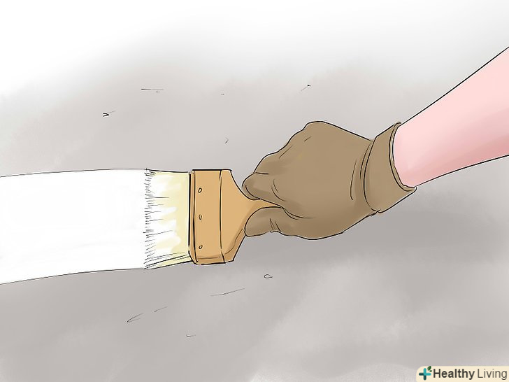 Ретельно вимийте бетон, використовуючи для виведення всіх виявлених вами плям відповідне засіб для чищення. потім вимийте його розчином, який вбиває бактерії і цвіль, що складається з 1 частини побутової хлорки і 15 частин води. Після цього ретельно вимийте підлогу чистою водою.