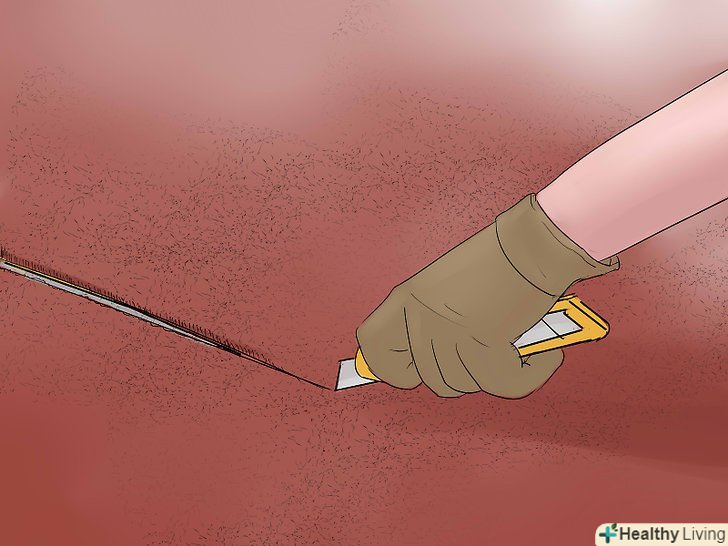 Розкрийте підлогу ґрунтовкою. Вам потрібно буде вибрати таку грунтовку, яка буде працювати з використовуваним вами клеєм для ковроліну. Проконсультуйтеся з співробітниками магазину, в якому ви купили ковролін, і переконайтеся, що куплений вами продукт підходить до типу вашого ковроліну.- Грунтовку можна наносити за допомогою валика з подовженою ручкою або пензлем. Забезпечте в кімнаті хорошу вентиляцію, особливо якщо ви використовуєте грунтовку на масляній основі.