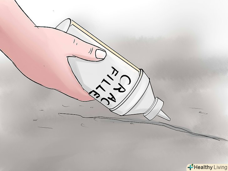 Закрийте всі тріщини і дефекти поверхні. перш ніж поверхня висохне, закрийте всі дірки і тріщини так, щоб верхня частина латочок була на одному рівні з рештою бетонної поверхнею.- Дрібні тріщини можна ремонтувати за допомогою засобу-герметика для закладення тріщин, густої рідини, яку можна заливати в тріщини. Мастика для ремонту бетону-це текстурована мастика, яку наносять на тріщини, що вимагають вирівнювання перед початком роботи. [3]