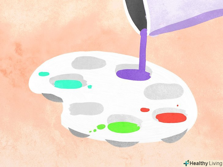 Змішайте фарби, які вам знадобляться, на палітрі. для якісного розпису стін краще використовувати акрилові фарби.