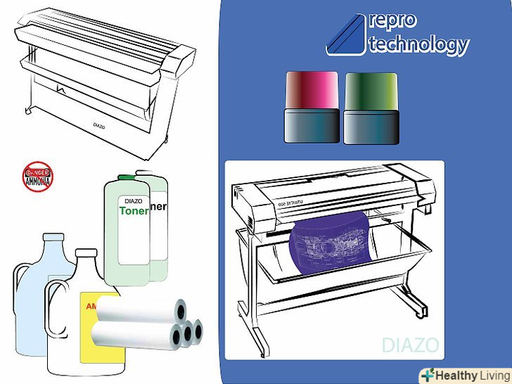 - Діазотипний процес не шкодить навколишньому середовищу. Аміак є повністю натуральною речовиною. Це основна речовина, яка має вирішальне значення для життя на нашій планеті. Воно складається з двох елементів-азоту і водню. Аміак виробляється всіма тваринами, включаючи людину, як природний продукт метаболічного процесу. Кожна людина виробляє близько 550 грамів на рік. Згідно з одним джерелом, 500 сімей випускають щороку більше аміаку, ніж 20 000 копіювальних діазотипних машин. Більш детальна інформація про аміак знаходиться нижче, в розділі "Поради".