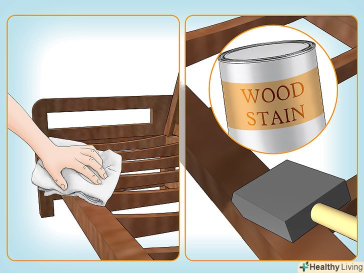 Очистіть меблі. прибравши стару оббивку, ви виявите під нею багато сміття, - перед тим – як ставити нову тканину, його краще прибрати. Якщо ви працюєте з диваном, вам варто пропилососити його нутрощі, і окропити очищувачем для тканини подушки і наповнювач, щоб трохи освіжити їх. Щоб підготувати дерев'яні частини, використовуйте трохи масла для дерева або спеціального очищувача, і герметично заклейте їх, якщо потрібно.- Якщо Ваша Меблі пошкоджена або подряпана, приділіть час її ремонту та підготовці до нової оббивки.