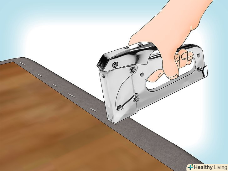 Скріпками зафіксуйте нову оббивку на меблях. кріпите по одному шматку оббивки, вистилаючи ними відповідні ділянки меблів. Скористайтеся будівельним степлером зі скріпками відповідної довжини, щоб надійно закріпити оббивку. Щоб в результаті нова оббивка села гладко, переконайтеся, що кріпите кожну ділянку рівно, без зазорів і складок.- Якщо вам потрібно підкласти додатковий шар ватину або інший набивання, зробіть це до того, як кріпити нову оббивку.