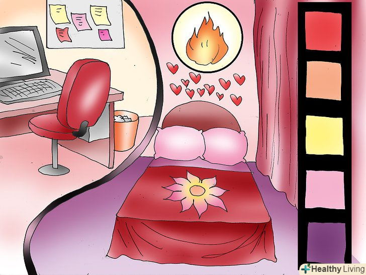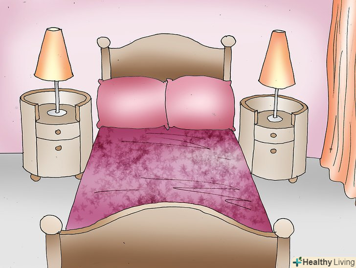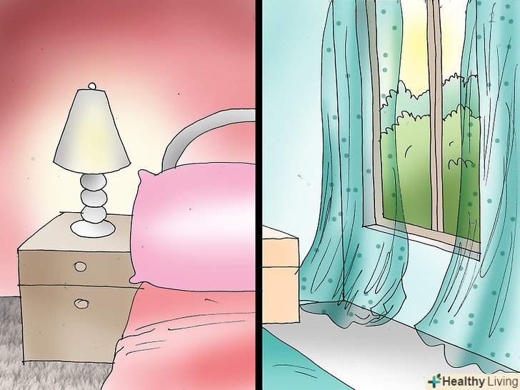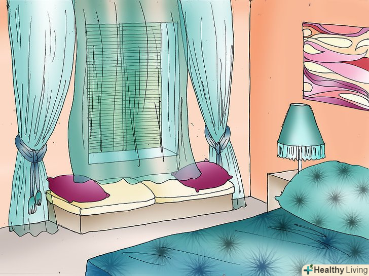 Виберіть для спальні м'яке освітлення. уникайте яскравого, різкого світла, а також стельових світильників над ліжком. Замість цього, використовуйте настільні лампи з м'яким світлом і постарайтеся використовувати максимум природного світла з вікна. Це дасть вам відчуття спокою і невимушеності. [6]
