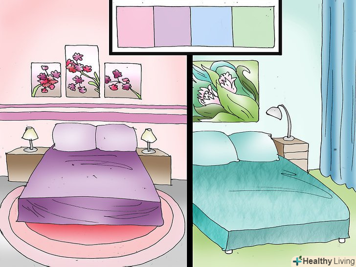 Включіть пастельні тони, щоб додати умиротворення і спокою в вашу спальню. зрештою, найважливіше-відчувати себе спокійно у власній спальні і добре висипатися вночі. Спокійні, м'які пастельні тони в спальні можуть додати вам безтурботності і душевної рівноваги. Ось деякі з кольорів, які ви можете використовувати:- Блакитний