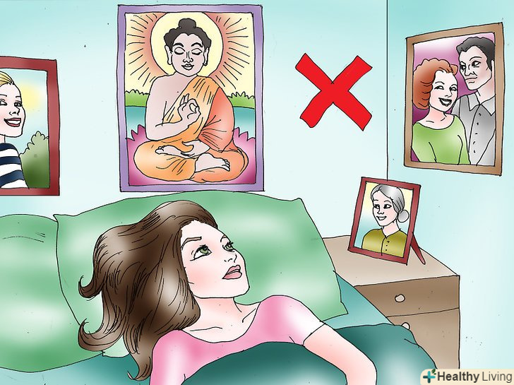 Не розвішуйте в спальні фотографії родичів або друзів. ви можете повісити кілька ключових сімейних фотографій, але не розвішуйте фотографії людей по всій спальні, інакше ви будете відчувати, як ніби за вами стежать. Те ж саме стосується релігійних діячів. [8]