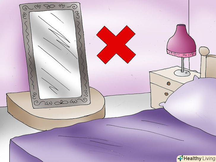 Не розміщуйте дзеркало або шафа з дзеркальними дверцятами навпроти ліжка. якщо ви не можете позбутися цих дзеркал, задрапіруйте їх. Вважається, що дзеркала можуть порушити сон. Постарайтеся взагалі не розміщувати дзеркала в спальні, особливо якщо ви ділите її з романтичним партнером, оскільки вони можуть відкрити простір для невірності. У дзеркал також занадто багато енергії для місця, призначеного для відпочинку.