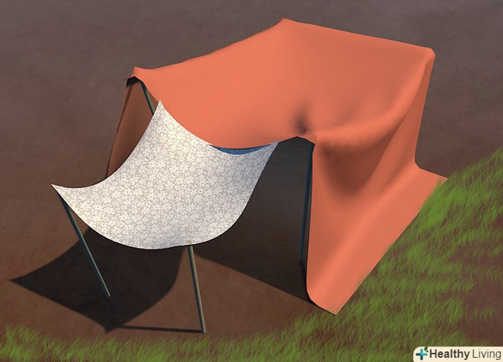 Візьміть душову завісу і використовуйте її як тент, прикріпивши її до корінців розкритого парасольки, так що вона буде звисати з гілок. тепер у вас є роздягальня (якщо ваша завіса не прозора!) або невелика ванна кімната.