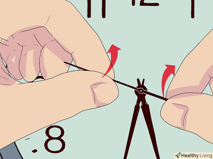 Переконайтеся в тому, що стрілки годинника не стикаються під час роботи. якщо вони все ж стикаються, обережно відігніть їх один від одного. Ні в якому разі не згинайте їх занадто сильно. Відігніть стрілки лише настільки, наскільки буде достатньо, щоб вони більше не чіплялися, коли проходять повз один одного. [8]